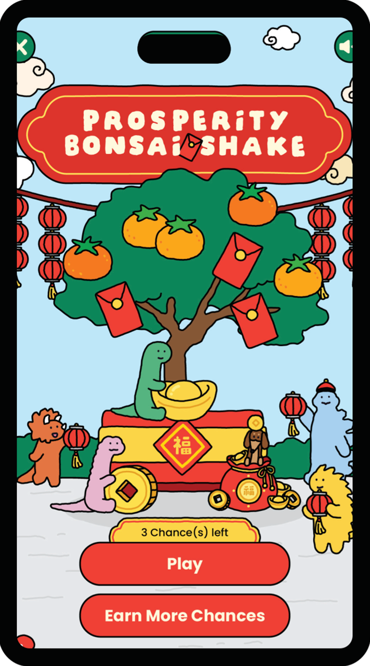 Tap fast to shake the Prosperity Bonsai in the Lendlease Plus mobile app and win up to 160,000,000 Plus$! Spend a min. of $28 in a receipt to earn 1 Game Chance.